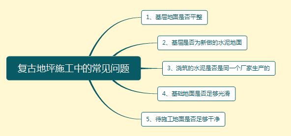 復(fù)古地坪在施工中經(jīng)常出現(xiàn)的問(wèn)題有基層地面不平整、基層不是新做的水泥地面、基礎(chǔ)地面不夠光滑等,為了便于大家了解,下面我們將從“復(fù)古地坪施工中的常見(jiàn)問(wèn)題”和“環(huán)氧地坪和復(fù)古地坪的區(qū)別”這兩個(gè)方面重點(diǎn)的分析介紹下!